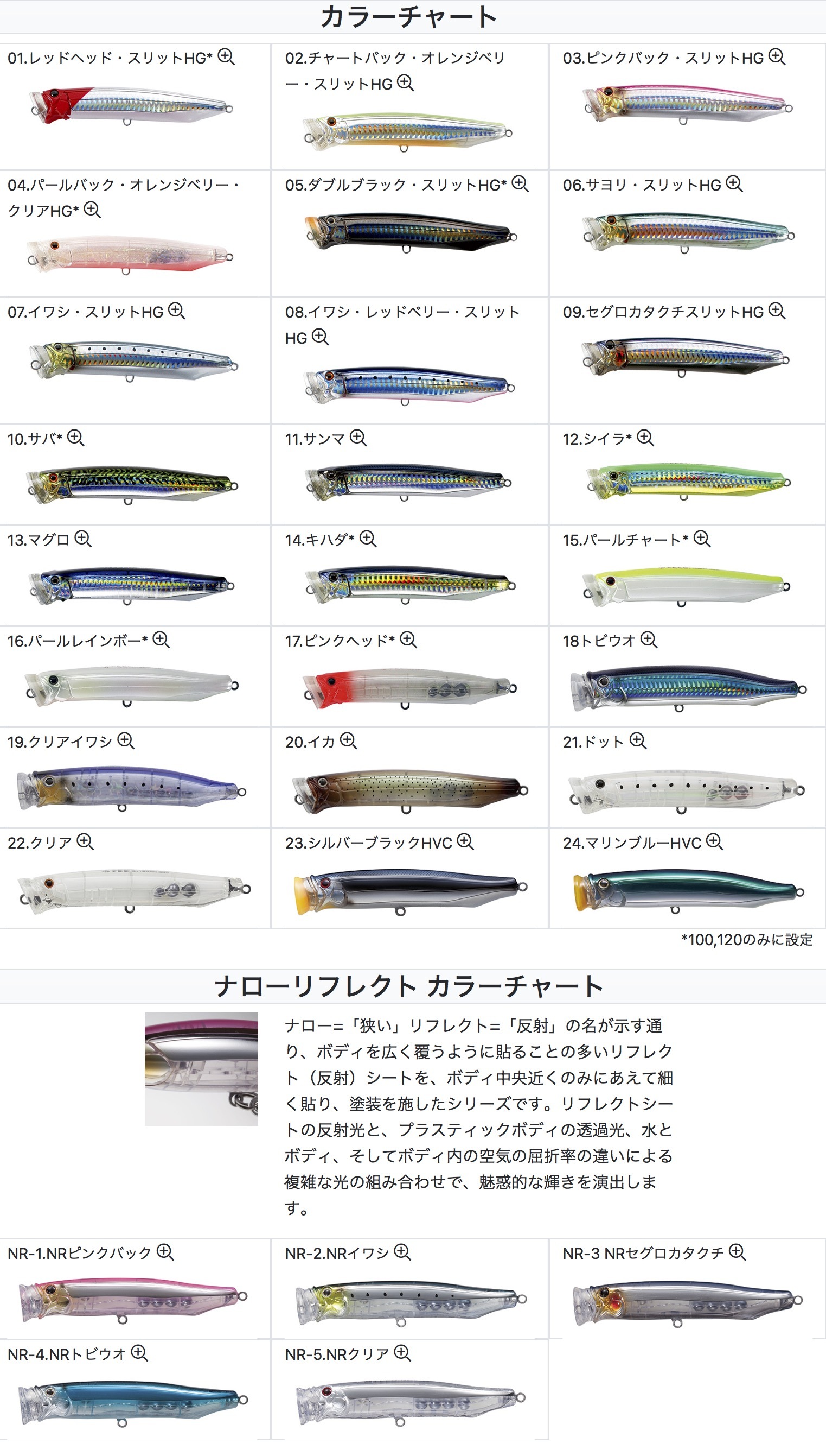 軽いジャークでもポップサウンドを奏でるマウスカップは音質重視。水面ぎりぎり、ほぼ直立の浮き姿勢は吸い込みやすく、ピンスポットの集中ポッピングも可能に。コンパクトボディ、高比重で飛距離も抜群。シイラ、カツオ、マグロ、青物、ヒラスズキとターゲットは幅広く、ショアでも、オフショアでも使う場所も選びません。