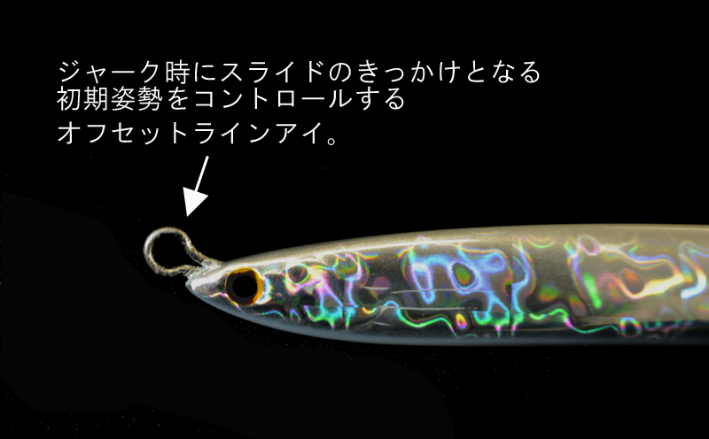 オフセットされたラインアイで、ジャーク時にスライドのきっかけとなる初期姿勢をコントロール。
