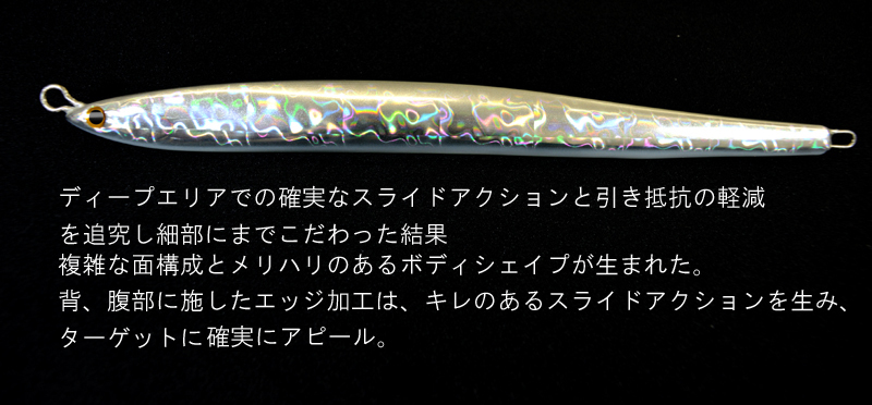 引き重りが少なく、1ランク下のタックルで操作でき、なおかつロッドの反発を生かした軽い入力で確実にジグをスライドさせることができ、突き詰めたスライド性能は、深度変化の少ないアクションも可能にし、誘いのバリエーションを増やします。