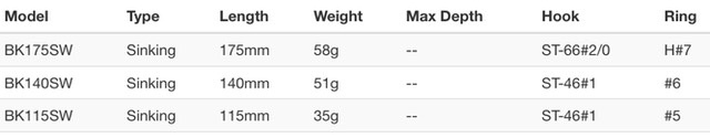 BK SINKING WORKSは、汎用性の高いブルーオーシャンの枠組みを越えた、ビッグなターゲットのスペシャルモデルです。各ボディに可能な限りのウェイトチューンを施し、飛距離、アクション、強度をとことんまで突き詰めました。青物、ヒラスズキから、果てはツナ、マーリンに至るまで。きっとあなたにアドバンテージをもたらせてくれるはずです。