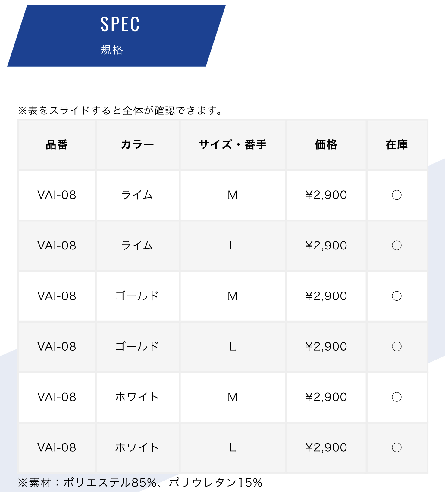 カラー:ライム、ゴールド、ホワイト