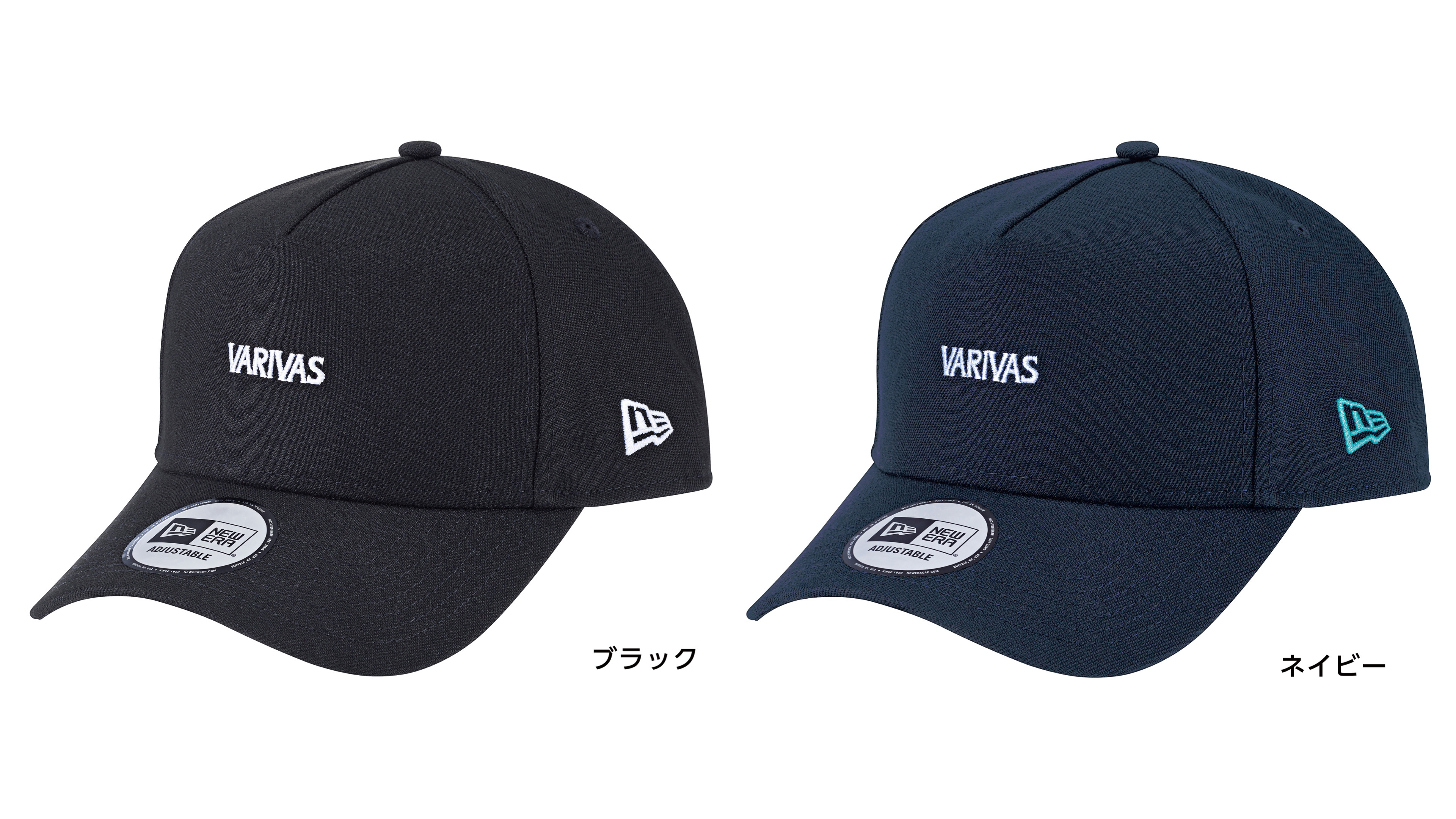 VARIVAS×NEW ERAコラボキャップ 小さめのロゴで主張を抑え、色では目立たせ、シンプルながらもロゴへ目を引くデザインに。 定番のブラック×ホワイトと、バリバスをイメージしたネイビー×エメラルドの2色展開。