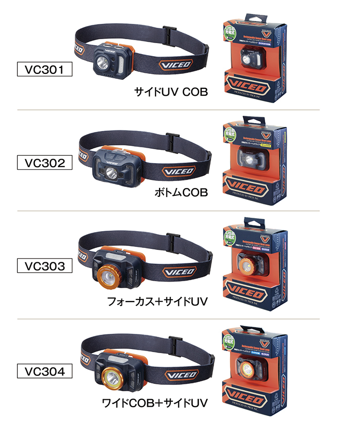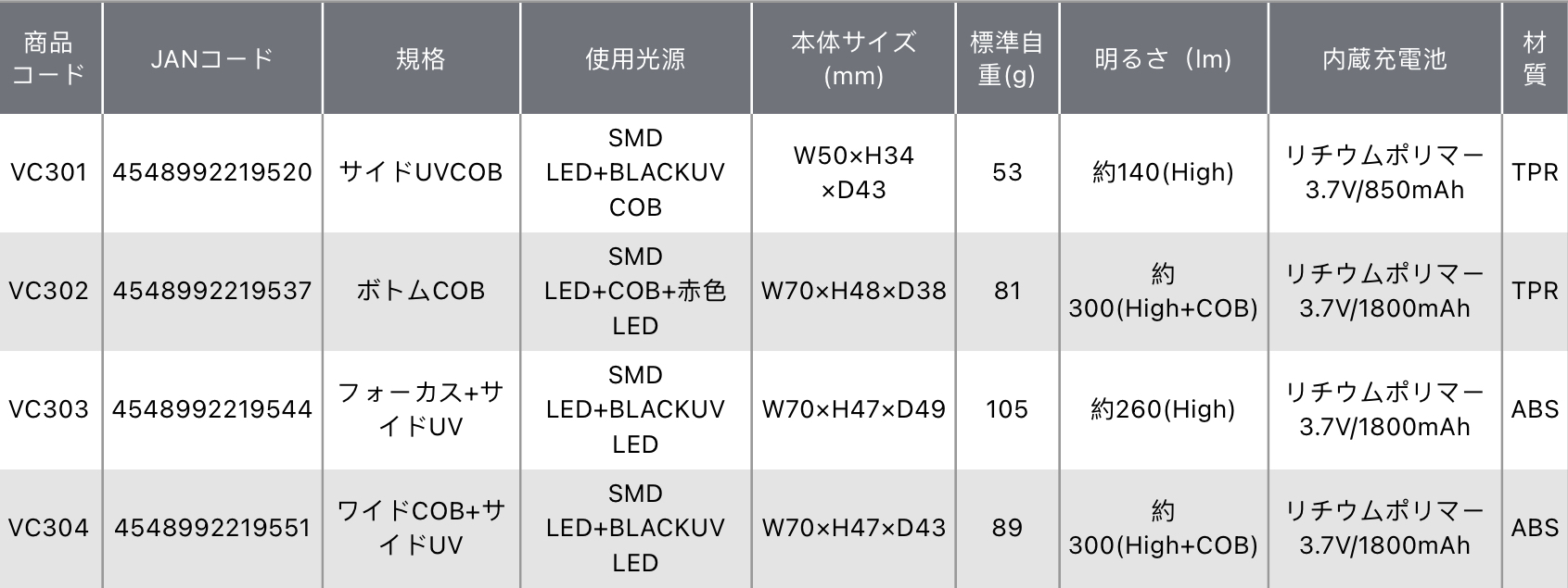 『ワイドCOB+サイドUV』は、ルアーチェンジなど細かい作業時に便利なワイドCOBを搭載。スポットビーム、ワイドビーム、ミックス(スポット+ワイド)ビームの3タイプの照射が可能。ミックスビームは足元も離れた場所も同時照射ができるので特に暗い釣り場での移動時も安心。両サイドのUVLEDでルアー照射も可能。