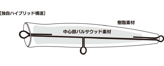 「マーベリック」と同様にウッドだけでは表現できないボディ剛性を確保し、樹脂素材による高い浮力とXESTA独自のウエイト配置により、あらゆるキャストでも飛行姿勢を崩さず安定した飛距離を確保する