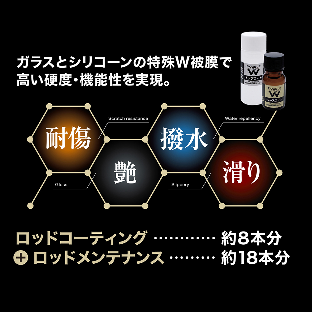 ●特殊なダブル被膜で高い硬度・機能性を実現したロッド用コーティング剤。