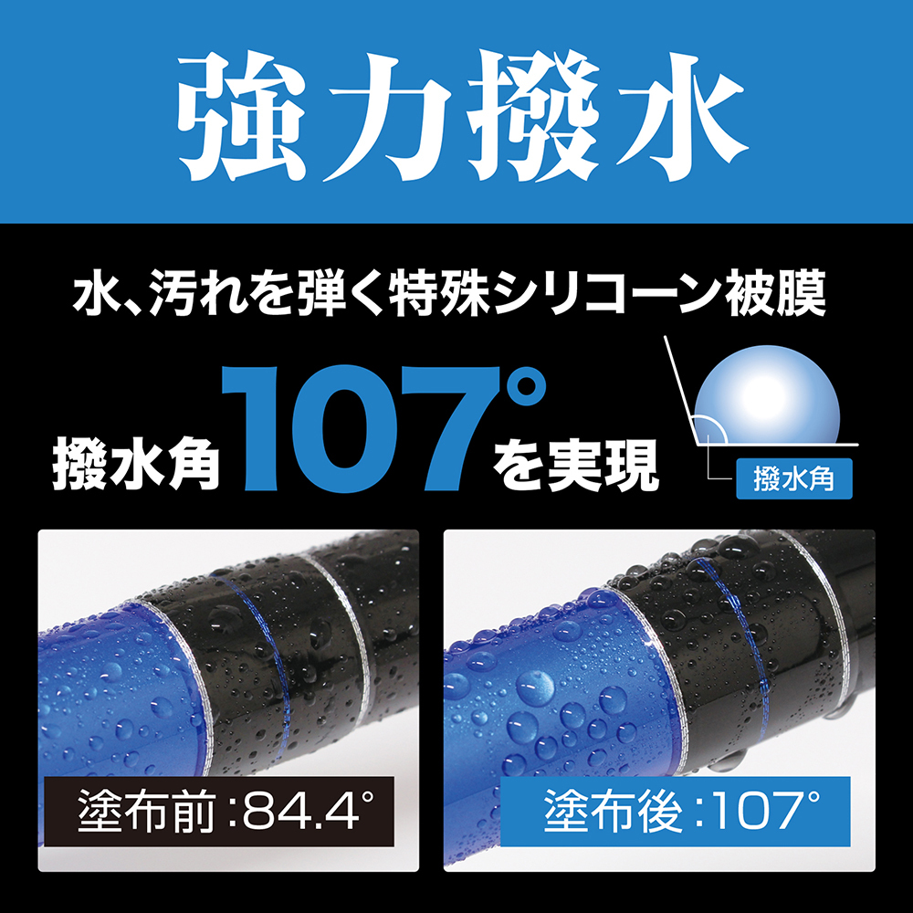 ●強力な撥水効果がある特殊シリコーン被膜により、汚れの付着軽減し、付いてしまった汚れも簡単に洗い流せます。