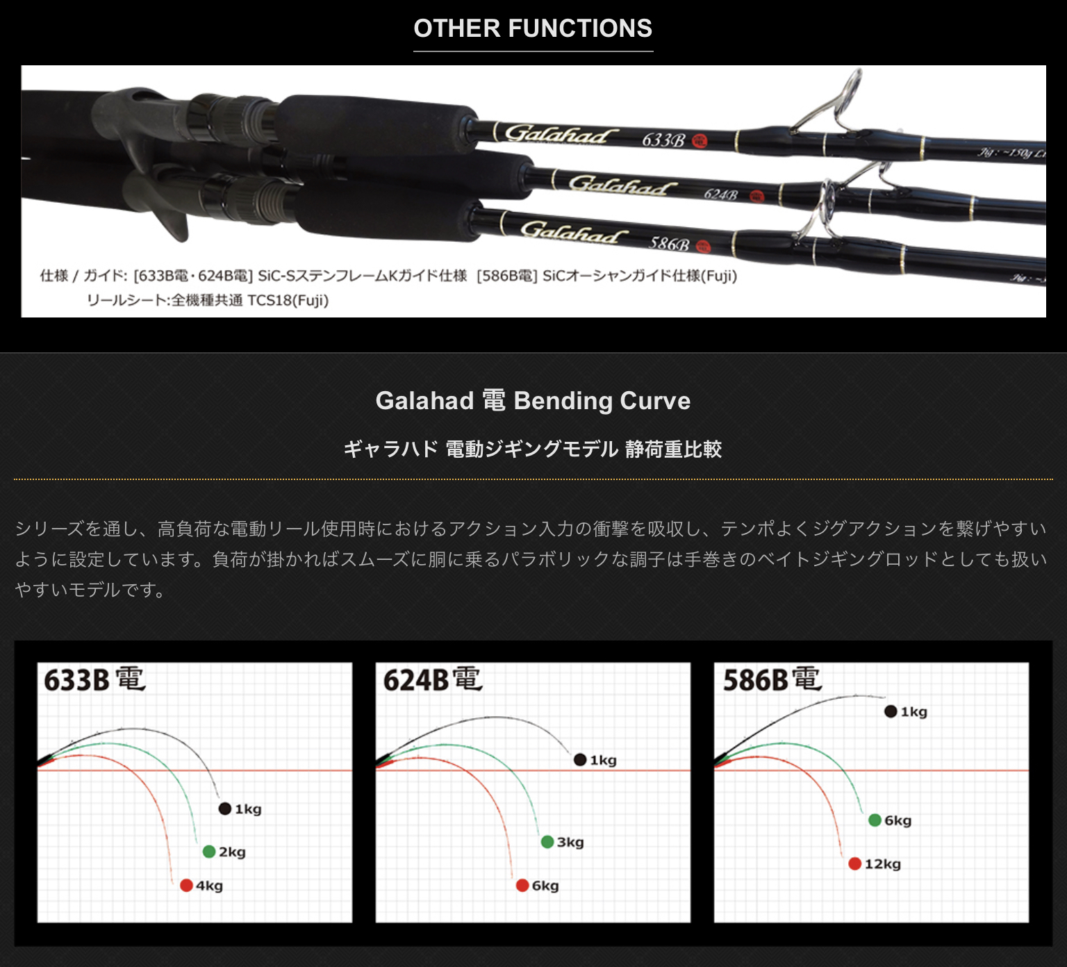 ギャラハド電動ジギングモデルは、電動モデル特有のしなやかなティップと強靭かつ粘り強いバットの組合わせで負荷の高い電動ジギングにおいて求められるブランク性能を追求しました。懐が深く衝撃を吸収しながらしっかりと残るバットパワーは、手巻きでは難しい連続したピッチでジグアクションを生み出すことが可能です。