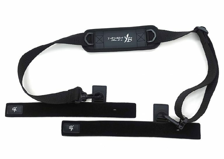 YBショルダーベルトは釣行の際のロッド携行を身軽にするためのアイテムです。伸縮素材のネオプレーンベルトを使用して、エギングやシーバスと言ったミドルクラスのロッドを2~3本まとめてパッキングすることが可能です。