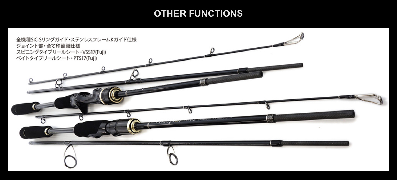 65ML、68Mの2機種共にルアーの使用範囲を広めに想定してロッドを設計しており、遠征先の様々な状況に対応でき、小型ターゲットを楽しみつつも強靭なバットパワーによりモンスタークラスにも果敢に挑めるモデルになっています。