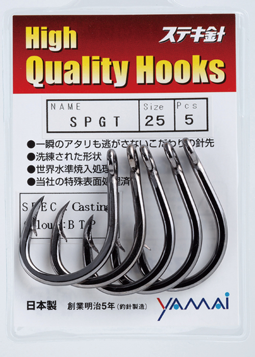 ハイカーボン含有の新素材を使用し、粘りと硬度を兼ねそなえ、更に化学研磨処理を処したシャープな針先にご注目下さい。釣果がひときわ違います。当社の特殊表面処理済み。近海の大物から海外遠征まで対応。リングタイプで、簡単に結びやすく、パワーを発揮する太軸仕様。少し、針先にネムリを入れることで、魚が針を丸のみする事を防ぐ。ゲーブ幅、シャンク、針先角度まで、計算されたフックです。平打ちで強度に問題全く無し。エサ用にも使用可能。近年、プラグ用のシングルフックや、アシストフックに使用されています。25号〜40号、針先を、三角形に特殊加工することで、口の堅い魚にも貫通する強靭な針先を仕様しています。